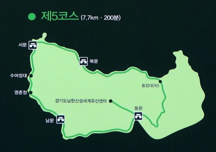 유네스코 세계문화유산으로 등재된 남한산성의 동서남북을 둘러볼 수 있는 5코스를 추천한다. 마루석을 만나고 싶다면 동장대터에서 벌봉까지 다녀오면 된다. 벌봉에서 정상석이 멀지 않으니 인증까지 겸사겸사 가능하다.