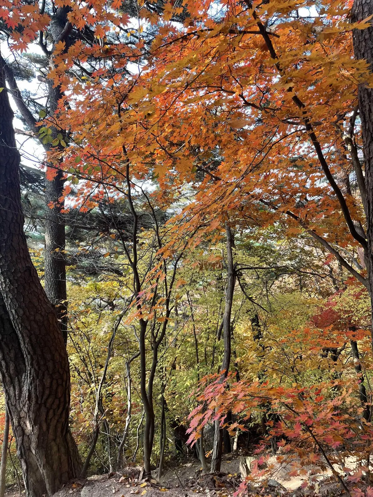 10월 끝자락에서 보는 형형색색의 단풍이다. 높고 맑은 하늘을 물들이는 잎들이 참 사랑스럽다. 산에 다니며 사계절의 소중함을 배우고, 각 계절을 흠뻑 느끼는 경험을 하고 있다. 자연의 아름다움을 카메라에 못 담는 것이 항상 아쉽다. 그렇기 때문에 또 산에 오르게 되는 것이고, 이렇게 선순환을 이뤄가고 있는 것일지도.