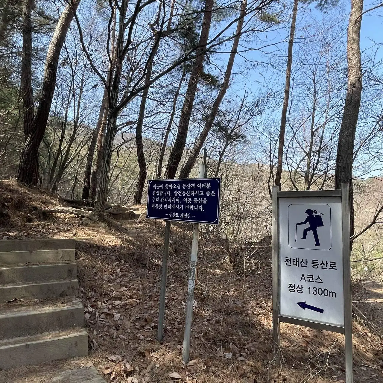 천태산은 민간인이 개설한 산이라고 한다. 투박하지만 산 곳곳에 개설인의 애정이 묻어있다. 여타 산에는 없는 '등산 코드 안내도 보관함'이란 것도 있었다. (용도를 잘 모르겠지만 생긴 건 마치 휴지통 같았기에 보관함을 열어보진 않았다) 뚱땅거리는 느낌의 픽토그램과 가끔은 비뚤게 붙여진 글자가 눈길을 끈다.