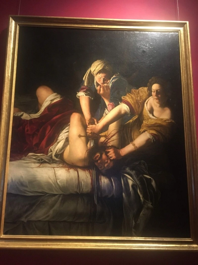 젠틸레스키라는 화가의 배경에 가장 큰 이유가 있었다. 우선 우피치에서 손에 꼽을 정도로 몇 안 되는 여성 화가이며 페미니스트 화가다. 그는 어린 나이에 그림을 배우다 아버지의 동료들에게 강간당하고 오랜기간 소송이 진행됐다. 재판 과정에서 산부인과 검사에 무고죄 무죄인걸 입증하려고 손가락 고문까지 당하면서 치욕을 겪었다고. (젠틸레스키가 강간당한건데 왜 고문을 당했는지는 정말 의문,,, )결국 고생 끝에 승소했는데 아버지가 그냥 합의해주고 젠틸레스키를 그냥 결혼시켜버렸다고 한다.