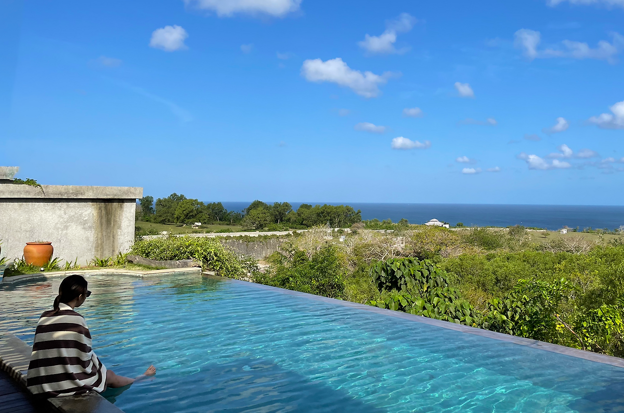 포장도 제대로 되어 있지 않은 언덕을 올라 숙소에 도착하자 전통 의상을 입은 매니저 분이 아주 반갑게 맞이해 주신다. 유창한 영어와 프로다운 면모를 탑재한 매니저의 안내를 받아 방에 도착하니 우리가 예약한 방보다 훨씬 넓은 객실이다. 이번에 예약한 숙소는 방 하나에 수영장이 딸린 풀빌라였는데 안내받은 곳은 방 두 개에 거실과 수영장이 있는 객실이었다. 잘못 안내된 것 같아 문의하자 업그레이드된 것이라며 답해준다.