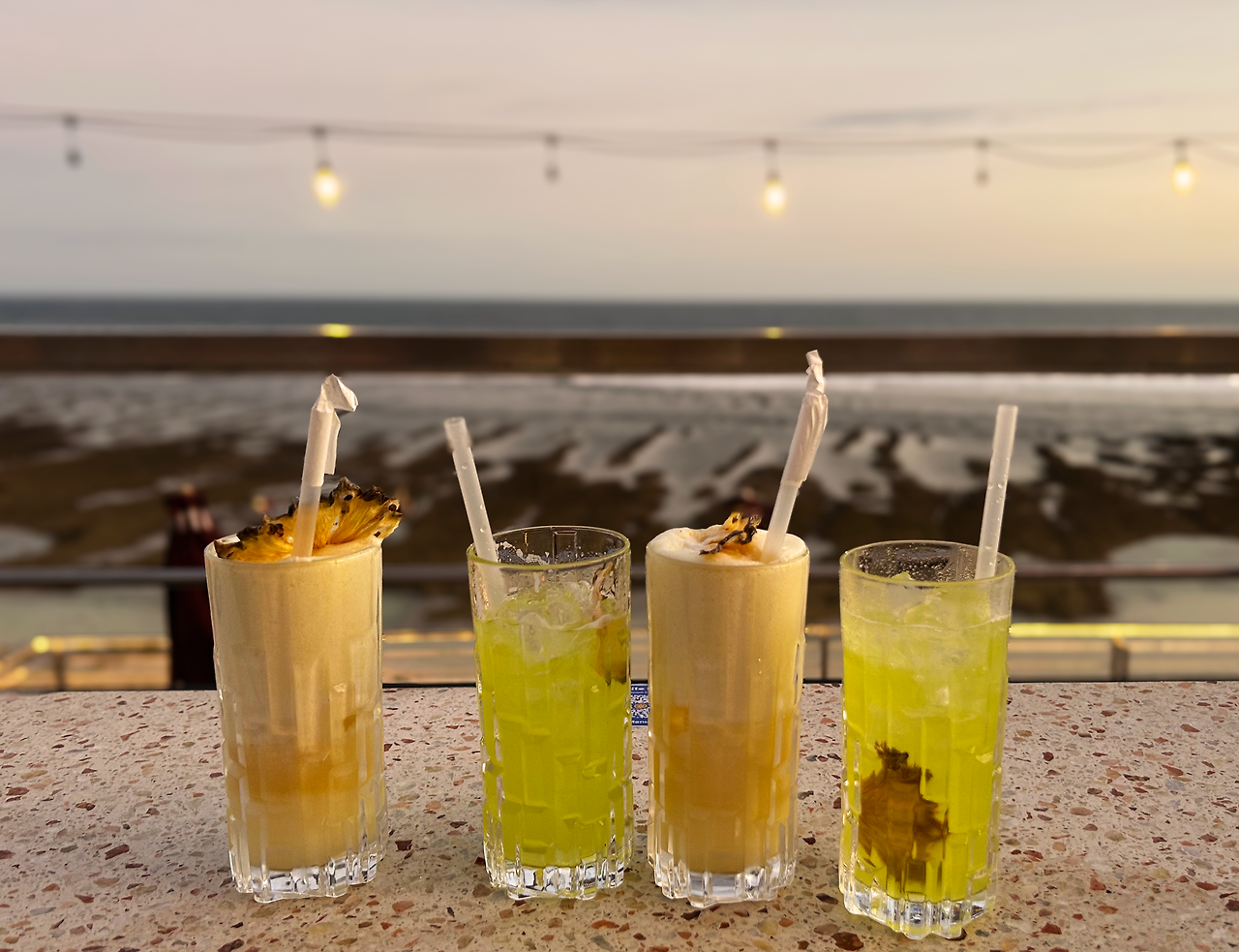 수영장 앞에 자리한 데이베드가 일몰을 감상하기 좋은 위치였지만 미니멈 차지가 있기 때문에 사이드에 위치한 바 테이블에 자리를 잡았다. 주문을 하고 바다를 감상하고 있으니 칵테일이 도착했다. 그런데 도착한 잔의 개수는 4잔. 의아하게 쳐다보자 해피 아워라서 프로모션 중이란다. 언뜻 프로모션 어쩌고 했던 것 같은데 이 뜻이었나.
