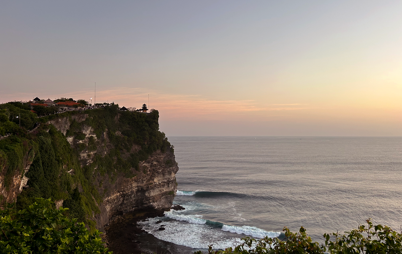 6년 전 H와 께짝 댄스를 보러 왔었을 때는 사원을 제대로 보지 못해 이번에는 사원만 둘러볼 겸 방문한 참이었다. 공연장과 반대쪽, 절벽을 따라 이어진 길을 걸으며 해가 지는 울루와투의 바다와 웅장한 절벽을 감상했다. 6년 전을 포함하면 이 사원만 3번째 방문인데 이제야 사원의 모습을 모두 즐긴 것 같은 기분이 든다.