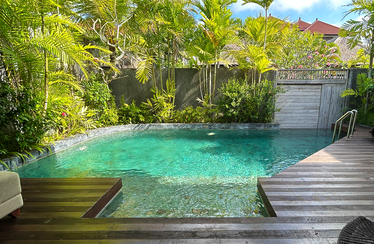 아직 12시가 안 된 시간이었지만 직원의 안내를 받아 먼저 체크인을 하는데 우리가 예약한 객실이 이미 다 찼단다. 응? 뭔 소리야라는 표정으로 빤히 쳐다보자 기존 객실에서 업그레이드된 풀빌라 객실로 배정해 주겠다고 한다. 좋아할 거라 생각한 직원의 기대와 달리 H의 표정은 떨떠름 그 자체.