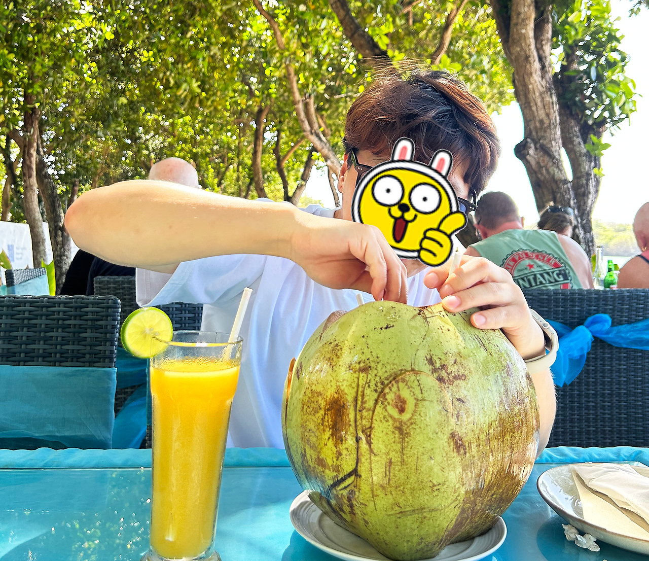 주문한 음료가 먼저 도착하고 코코넛 속살을 숟가락으로 떠 H에게 권했다.