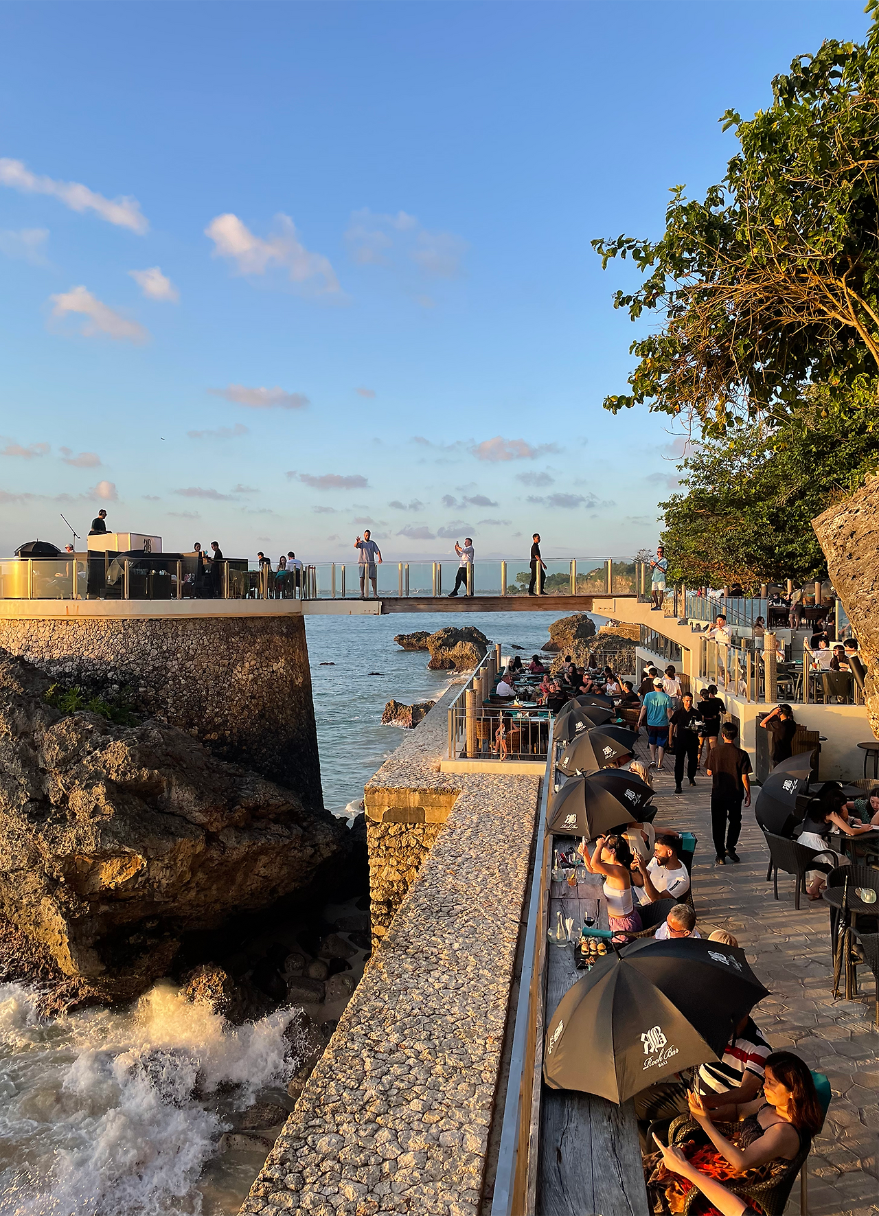 취향은 아니지만 야무지게 수영장을 이용해 준 우리는 그 유명하다는 락바로 가기 위해 다시 트램을 타고 이동했다. 미리 예약을 했음에도 불구하고 길게 늘어선 줄에서 한참을 기다린 후에야 락바로 연결된 엘리베이터에 탑승할 수 있었다. 직원의 안내를 받아 바위 위에 위치한 테이블에 자리를 잡고 음료를 주문했다.