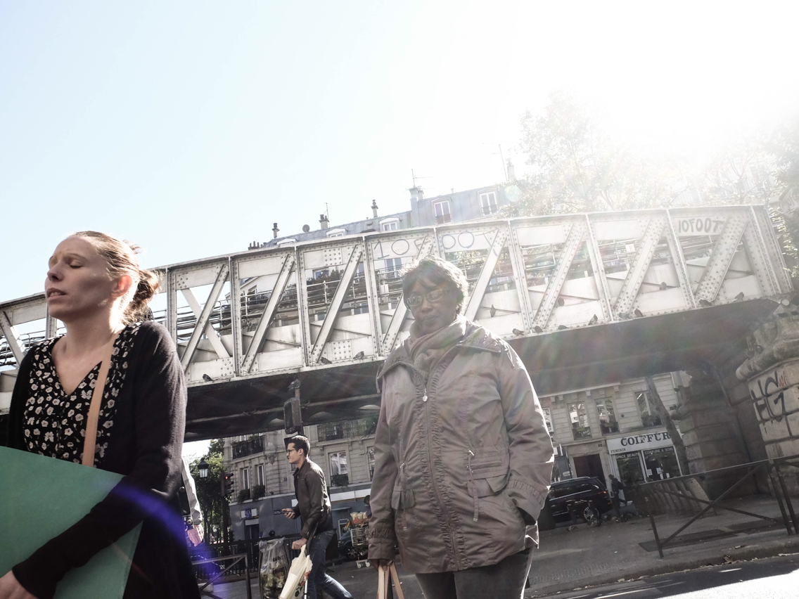 강렬한 빛으로 두 사람의 얼굴은 거의 날아갔지만 낯선 구도, 이질감이 느껴질 정도로 가까운 피사체의 모습이 마음에 든다. 특별히 이렇게 촬영하겠다는 마음은 없었지만 계속 촬영하며 걷다 보니 얻어걸렸다. 스냅사진은 운빨도 한몫한다.