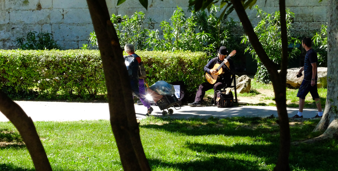 기타 치는 할아버지가 내놓은 어떤 사물에 햇빛이 반사됐고, 그 사이를 우연히 다른 할아버지가 지나갔다. 두 할아버지의 완벽한 콜라보레이션 덕분에 작지만 빛나는 역광 사진을 얻었다. 사실 역광 빛이 없어도 한 량 한 량 한 느낌이 풍기는 이미지이긴 했다.