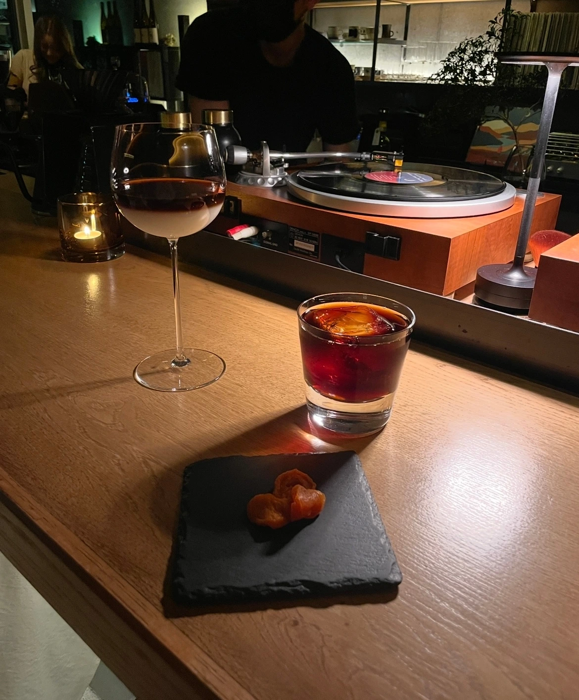 어떤 노래를 지금 재생하고 있는지 항상 LP를 고정시켜서 보여주시기 때문에 참고하기 좋다. 그리고 무엇보다 눈에 띄는 것은 수많은 와인잔들과 유리컵들이다. 잘 정리되어서 조명을 통해 빛나는 모습을 카운터에 앉으면 볼 수 있는데, 그것만으로도 정겨운 나카메구로의 느낌과는 사뭇 다른 매력을 느낄 수 있다.