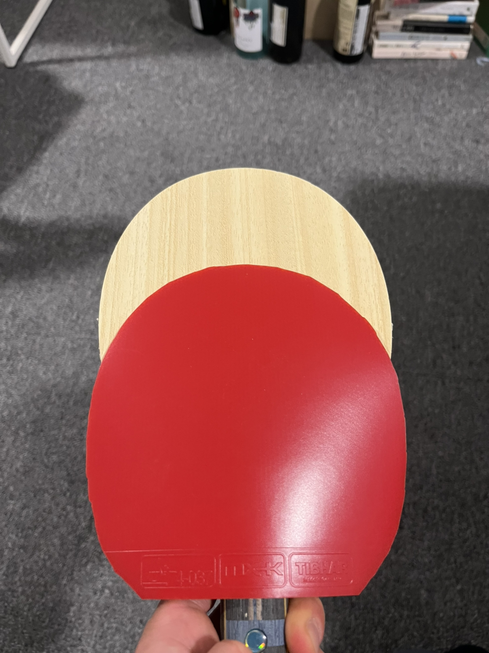 나중에 알게 되었지만 러버 풀을 제거할 때는 그 위로 풀을 몇 겹 더 바른 후 떼내면 스펀지가 상하지 않는다. 다시 원점으로 돌아가 러버 2번, 라켓 1번 풀을 발라야 하니 1시간의 시간이 더 소요되었다. 붙이는 과정에서 재미는 있지만 전문가에게 맡기는 게 정신건강에 평화롭다. 다시 잘 말려준 후 심기일전하여 러버를 라켓에 잘 맞추어 살포시 내려놓고는 와인병을 밀대 삼아 가볍게 밀어주었다. 다행히 전에 남았던 자국 없이 깔끔하게 붙었다. 이로써 뒷면 역시 마무리. 탁구공으로 양면을 마사지하듯 부드럽게 밀어주었다. 함께 산 니타쿠 사이드 테이프를 붙여주면서 러버 붙이기를 끝냈다. 2시간 반 동안 낑낑대서 그런지 목이 아파온다. 역시 고생은 사서 하는 편인지 다음에는 이보다 훨씬 잘할 수 있을 경험을 얻었다.