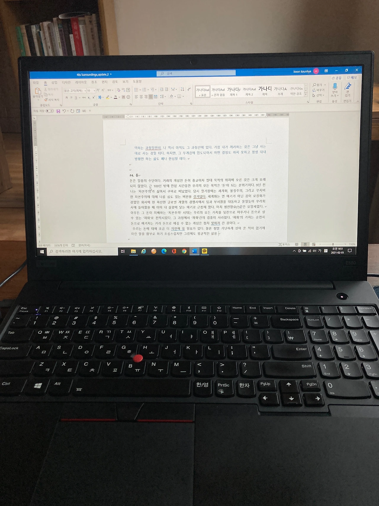 이제 워드로 옮길 차례. 생각의 흐름대로 갈겨쓴 일기 같은 글이어서 다시 볼 자신이 없었다.