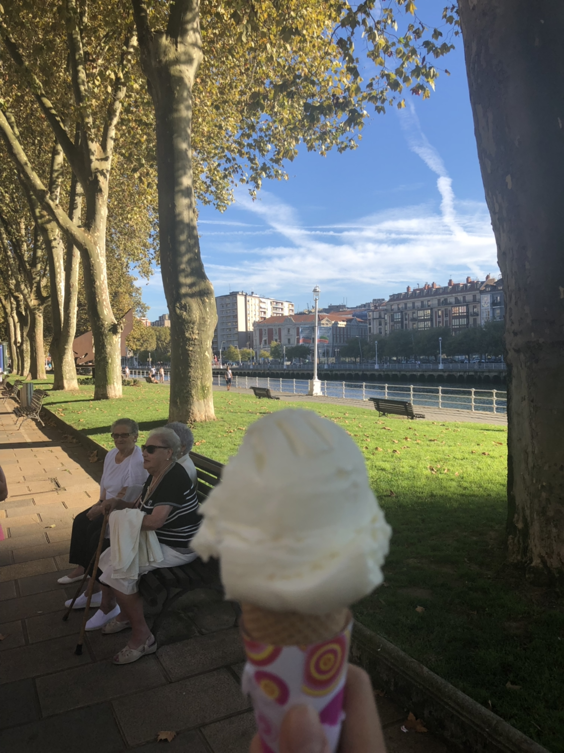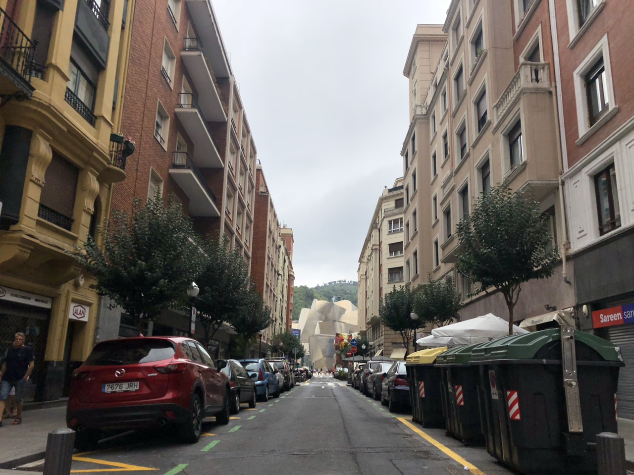 네르비온 강을 끼고 쭈욱 따라가는 모든 길에 미술관이 보인다. 어느 스페인의 중소도시처럼 베란다가 딸린 5층짜리 오래된 건물들이 즐비하여 있고 길을 걸으면 그 사이에 은색 빛의 구겐하임이 보이는데 2018년의 지구에 떨어진 어떤 행성 같기도 했다.