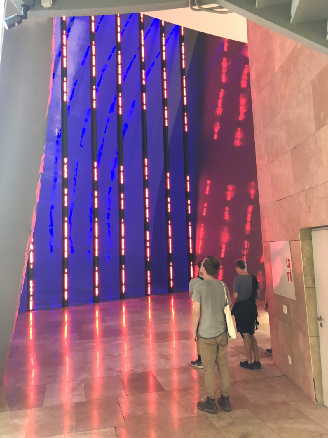 키치하고 알록달록하기 짝이 없는 풍선이 티타늄의 빌바오 미술관과 함께 있는 이질적인 모습이 호기심을 자극했다. 제프 쿤스의 작품인지 의아할 정도로 거대한 개꽃. 사실 내부에 들어가지 않더라도 외부의 조각에 감탄하는 것만 해도 종일이 걸릴듯한데 내부로 들어서면 제니 홀저의 미디어 마음을 어지럽힌다. 내부의 두 번째 리처드 세라의 방에서 작품을 따라 걸어보면서 비로소 그의 작품을 온몸으로 받아들이는 경험을 처음 해본다. 공감각이 흐트러지며 어지러웠다.