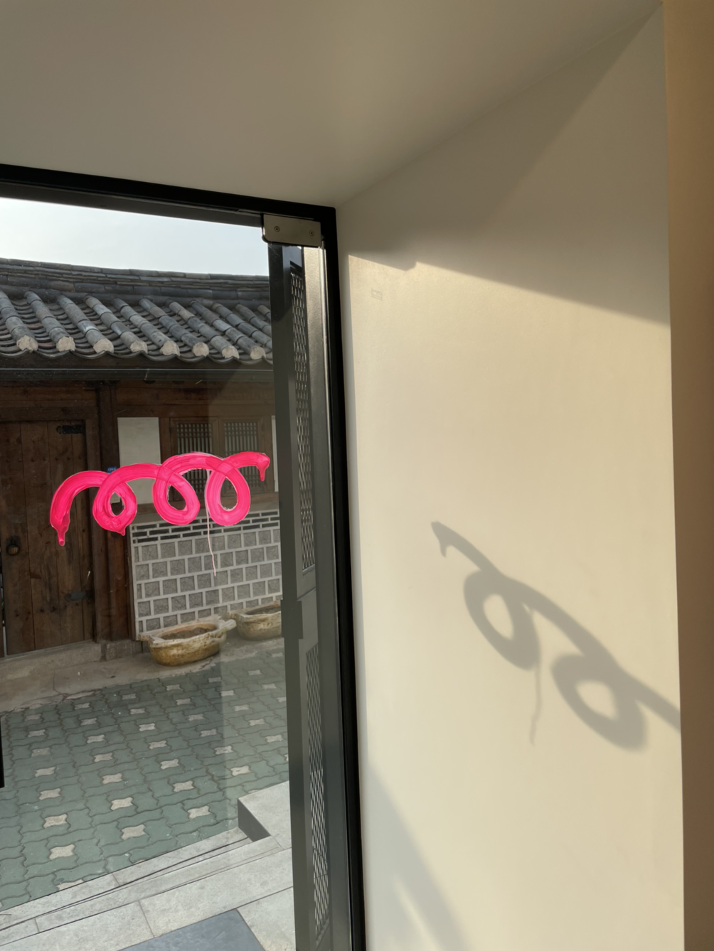 작가님께서는 철수 날 나를 닮은 속눈썹을 하고 있는 <SOLDOUT> 이 크게 적힌 작품을 선물해주셨다. 책 출간 기념이라고 한다. 그리고 내 왼쪽에 걸려있던 10호짜리 작품은 갤러리 오픈 선물이라며 주셨다. 나는 기쁨을 감추지 못하고 소리를 질렀다. 작품은 일부는 갤러리 수장고로 돌아가고 일부는 작가님의 차에 실렸다. 작가님을 보내고 창문에 남아있는 글자 커팅 흔적을 지워내던 중 갑자기 피곤함이 몰려와 집으로 발걸음을 향했다.