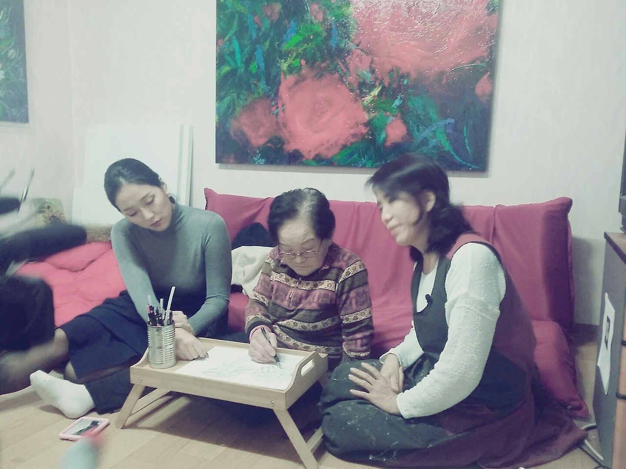 엄마의 화실에서 전시에 대해 상의하고 할머니의 작품 액자를 그림과 맞게 직접 액자를 만들었다. 신문사 인터뷰 일정으로 외할머니는 시골에서 올라오셔서 우리 집에 며칠간 머물며 나와 동고동락했다. 나는 그런 할머니에게 틈만 나면 작품에 대해서 물어봤다.