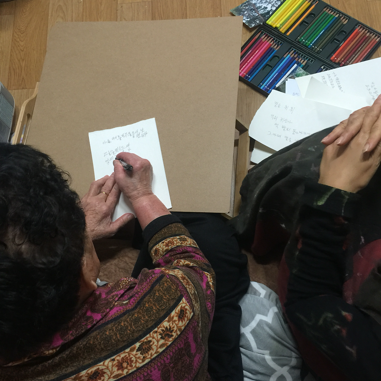 근 삼 년 동안의 작품 활동으로 할머니께서는 치매가 거짓말처럼 사라졌다. 그림 그릴 때마다 엄마가 이끌어낸 과거에 대한 끝없는 질문에 대해 생각하고 또 그 시절의 색들을 그려내기 위해 종이 위에서 만들어진 놀라운 결과였다. 지금은 젊은 시절 잠시 배운 일본어까지 유창하게 하실 만큼 예전으로 돌아오셨다.