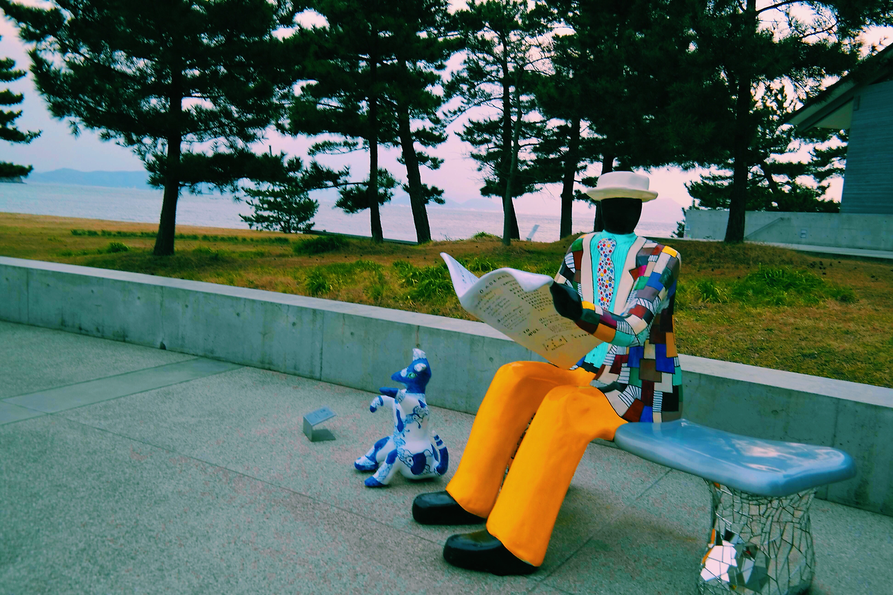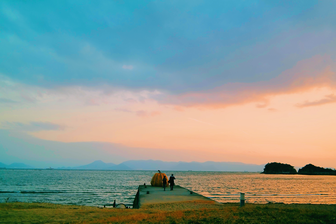 눈앞에 아득히 펼쳐진 해변과 붓으로 스윽 그린 것 같은 하늘에 뚝 떨어진 같은 쿠사마 야요이의 호박. 예술 탐방은 미술관을 나와서부터야 본격적으로 시작되는 듯했다.
