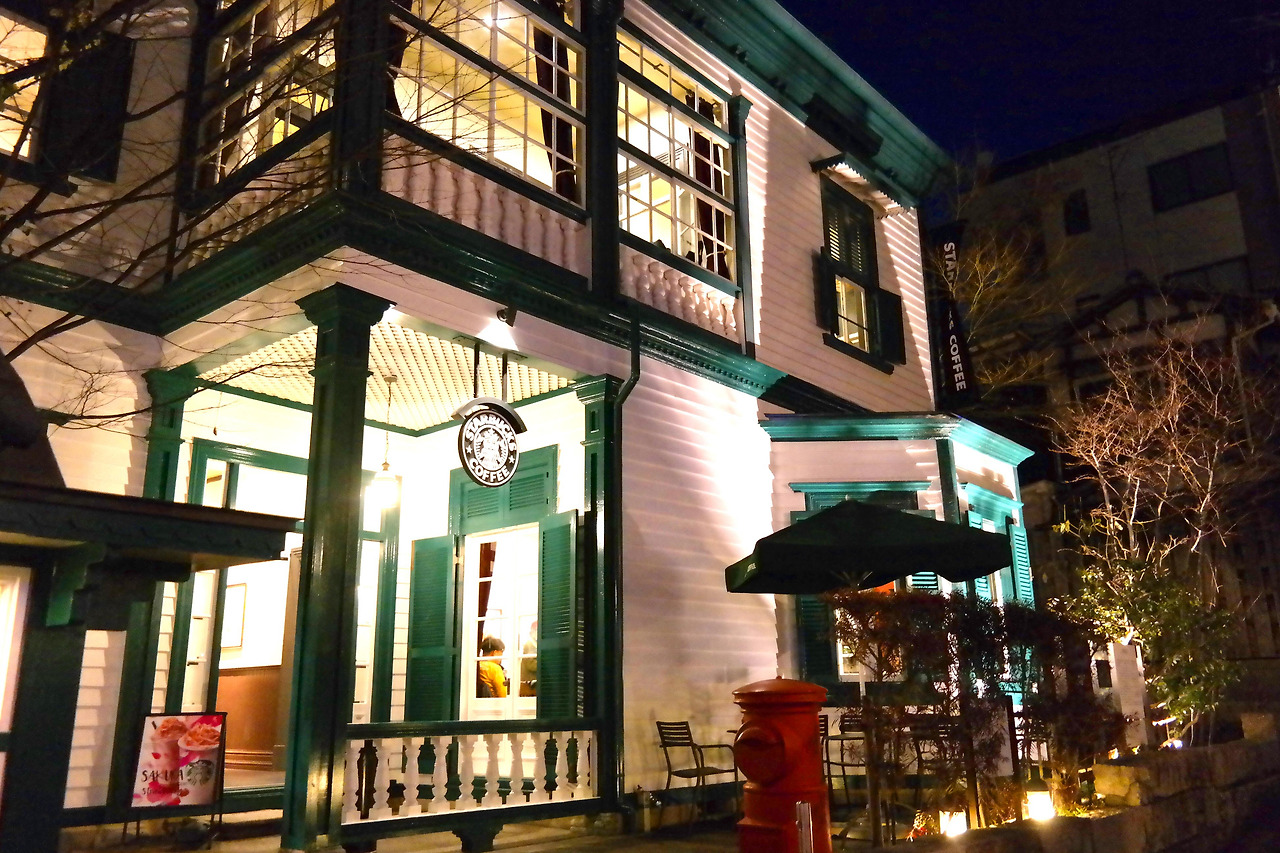 1995년 고베 지진으로 파손되어 철거될 위기에 처했던 것을 복원시켜 목조로 된 실내 , 벽난로와 고풍스러운 창과 녹색 디자인으로 파손 전의 모습을 재현해 놓은 것이다.