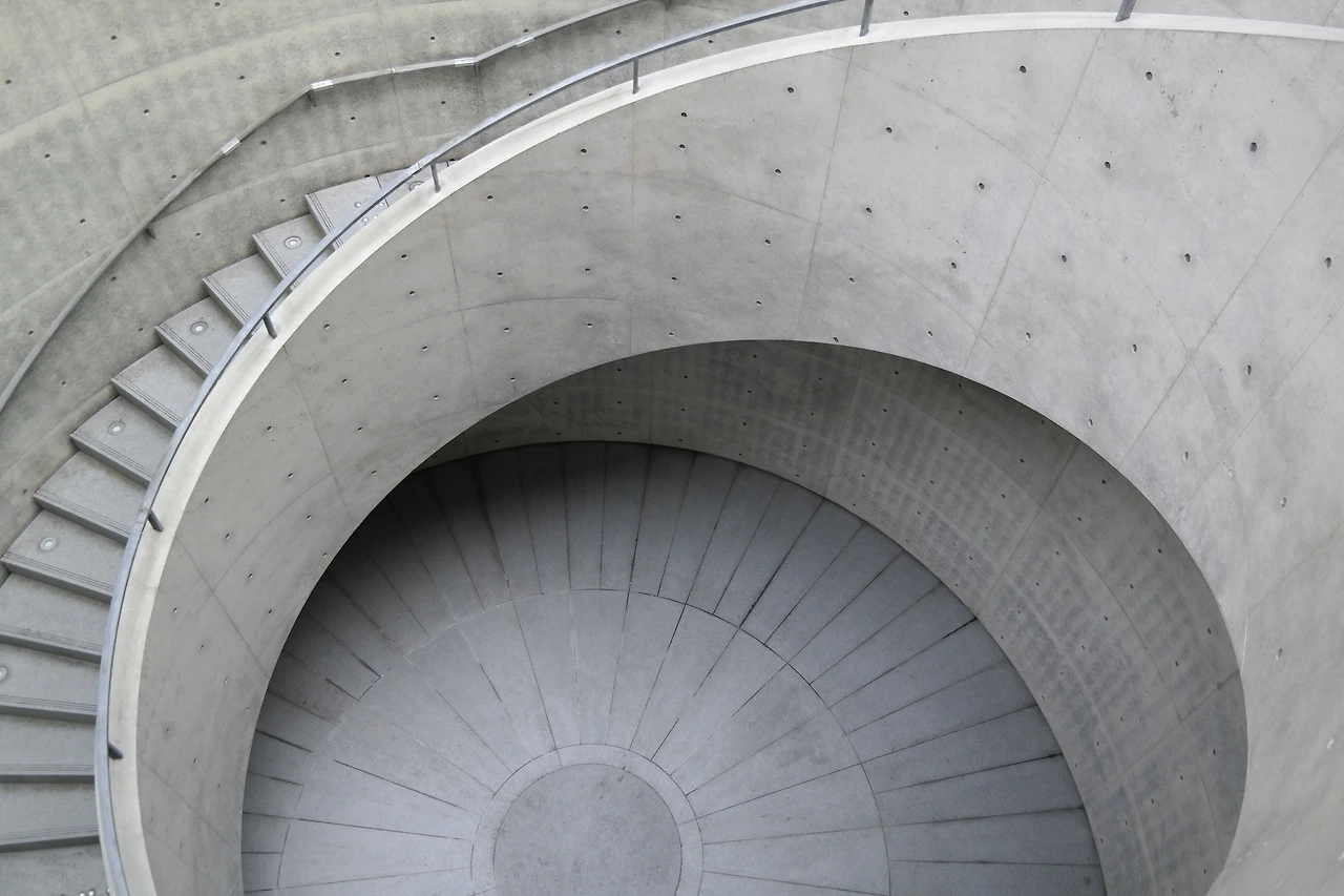 계단 끝까지 오르고 올라 아래를 내려보자 빨려 들어갈 것 같은 완벽에 가까운 콘크리트 곡선이 보인다.