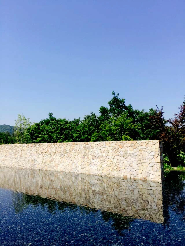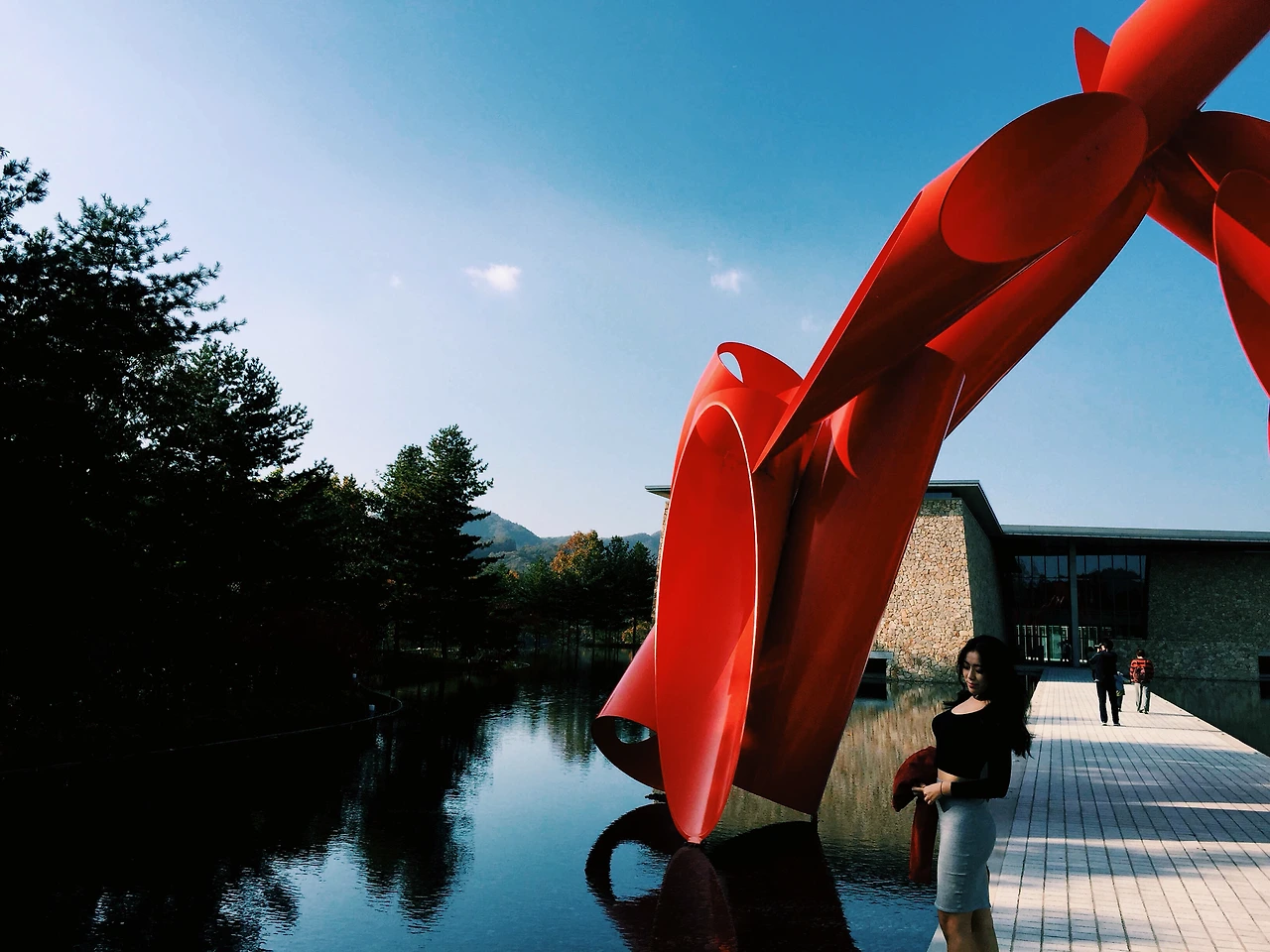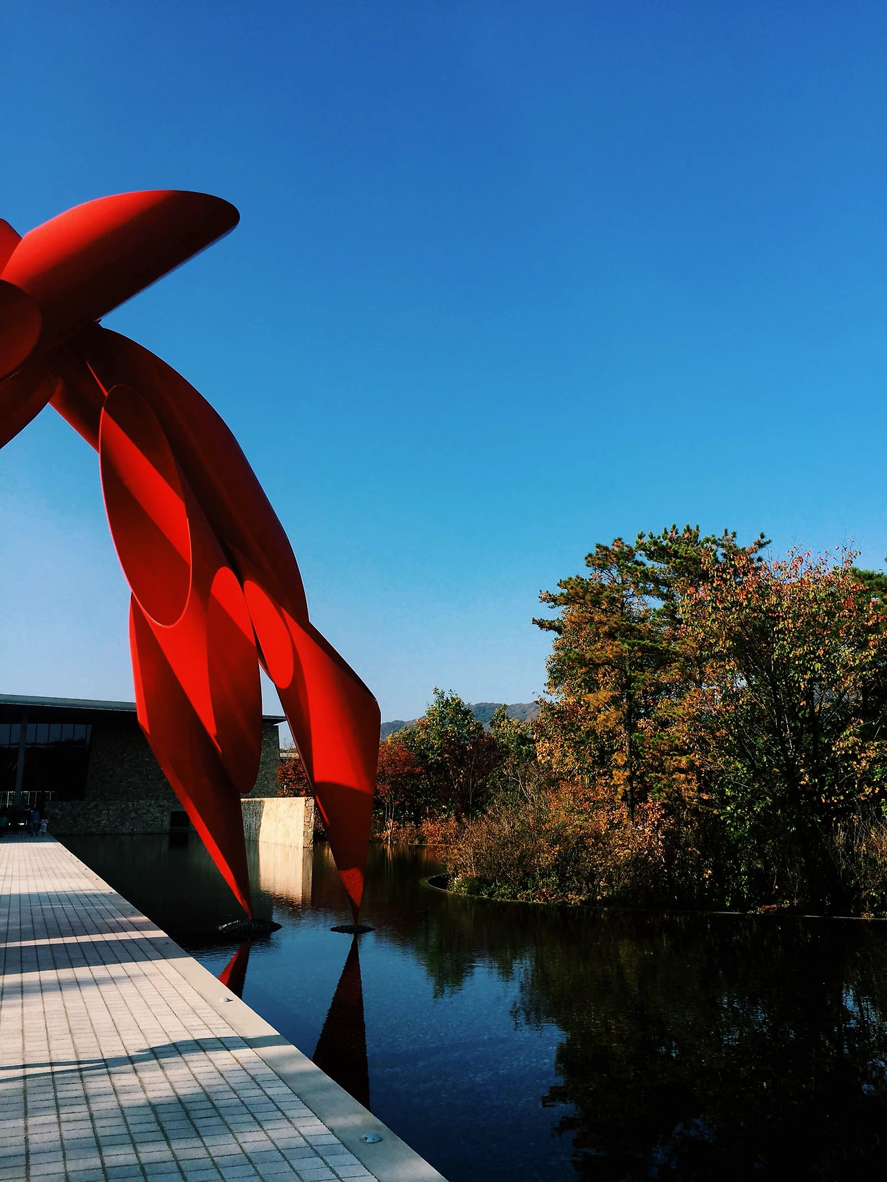 미술관에 들어가 티켓팅을 하기 전까지 두 번의 놀라움이 기다리고 있다. 바람결을 따라 움직이는 붉은 조각과 뻥 뚫린 자작나무길 에 감탄해 뛰기 시작하던 심장박동이 다시 제박자로 오기도 전에 눈앞에 펼쳐지는 워터가든 때문이다.
