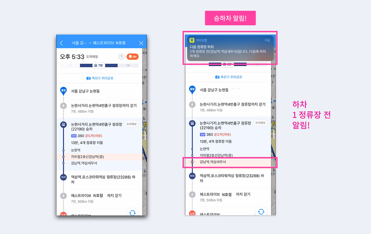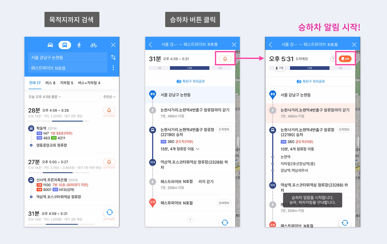 그 중에서도 제가 가장 애용하는 "승하차 알림"기능 UX/UI에 대해 자세히 뜯어보겠습니다!