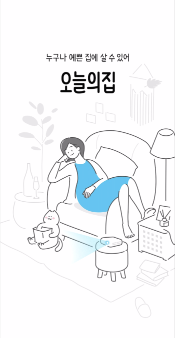 누구나 예쁜 집에 살수 있어라는 슬로건과 일러스트가 splash 화면으로 나와요. 몽글몽글해지는 감성