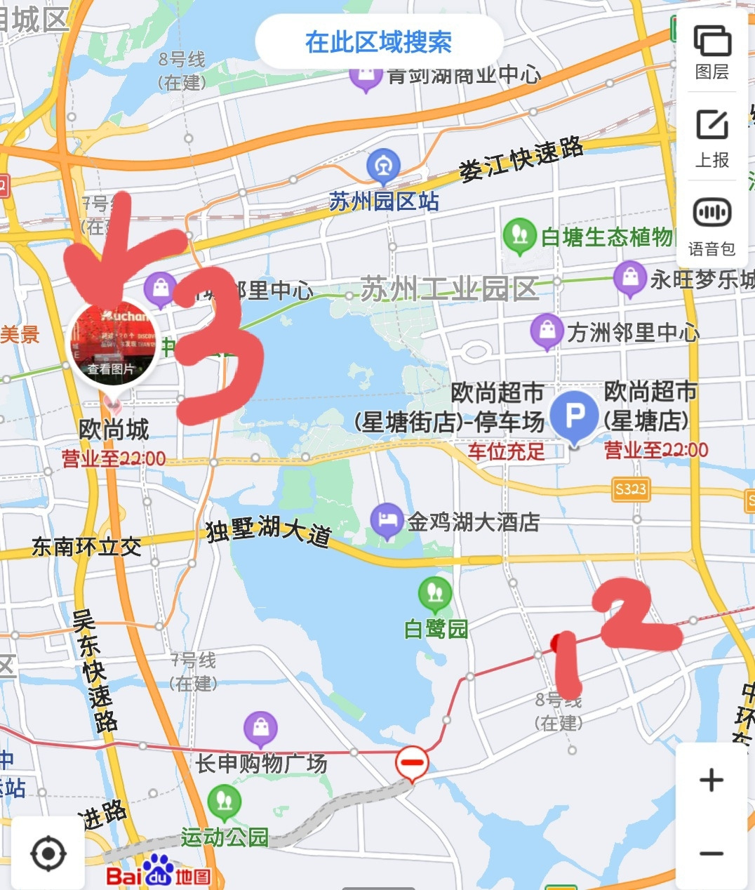우리 집 서쪽 편에는 두슈후라는 정말 큰 인공 호수가 있었는데, 분명히 루루는 마트가 집에서 직진만 하면 나오는 북쪽에 있다고 했는데 기사님은 서쪽의 엄청 큰 호수인 두슈후까지 건너서 굉장히 멀리 온 상황이었다.