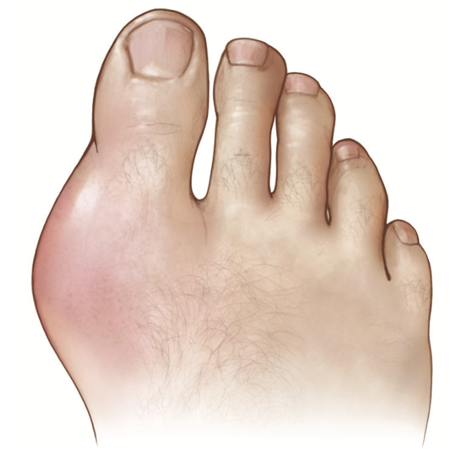 통풍은 요산(uric acid)이라는 노폐물이 혈액에 과다하게 축적되면서 발생합니다. 요산이 관절이나 주변 조직에 작은 바늘 모양의 결정 형태로 쌓이게 되면 면역 시스템이 이를 공격해 염증과 심한 통증을 유발합니다.