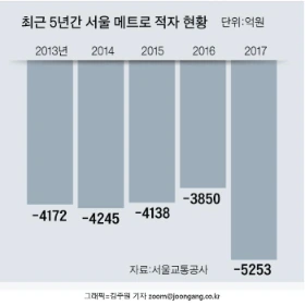 하지만 서울교통공사의 2017년 손익계산서를 보면, 영업손실이 1월1 일부터 5월 30일까지 메트로는