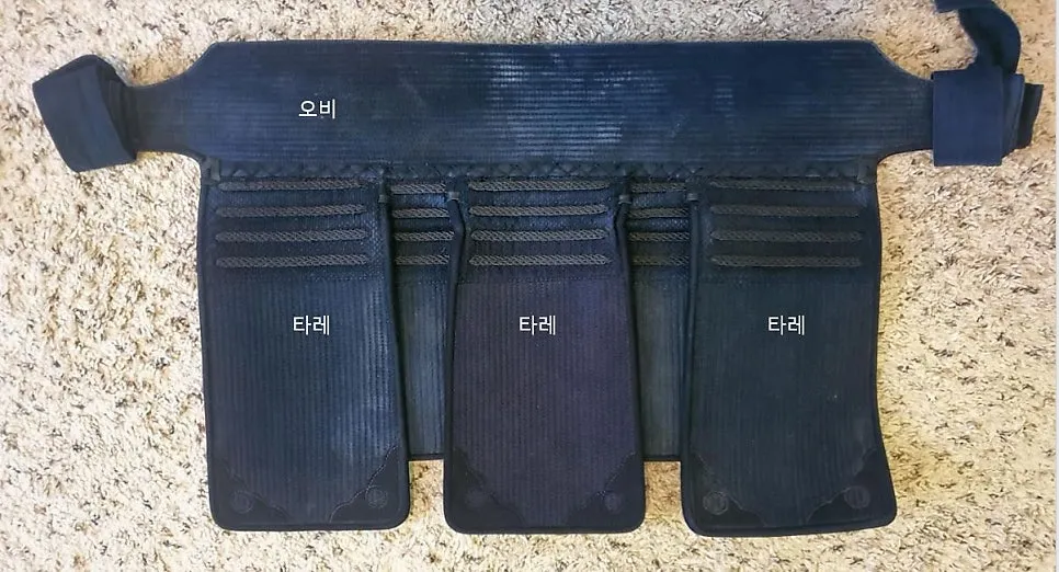 하복부를 보호하기 위해 착용하는 갑상은 허리를 감싸는 오비와 전면과 측면을 보호하는 타레로 구분된다. 연습 중에 호면이나 호완, 갑 처럼 직접적으로 타격을 받지 않는 부분이지만 가끔 허리를 빗맞는 경우, 혹은 상대가 중단을 풀지않고 부딪히는 경우 하복부를 보호하게 된다. 어떤 포단과 바느질을 사용했는지에 따라 가격이 달라지지만 타레 부분에 자수장식과 가죽장식을 얼마나 넣었는지에 따라서도 가격이 달라진다. 물론 사슴가죽을 사용하고 화려한 장식과 자수가 포함될 수록 가격이 비싸진다. 호면 등과 세트로 구입하면 동일한 포단을 사용하게 되므로 일체감을 줄 수 있다. 오비 부분은 종종 땀 등으로 오염이 되고, 하얗게 바래기도 하지만 직접적으로 피부에 닿는 부분이 없고 갑을 착용했을때 속으로 가려지기 때문에 관리의 부담이 크지 않다. 그늘에 잘 말려 사용하고 가끔 호구용 도료로 칠해 주면 깨끗하게 사용이 가능하다.