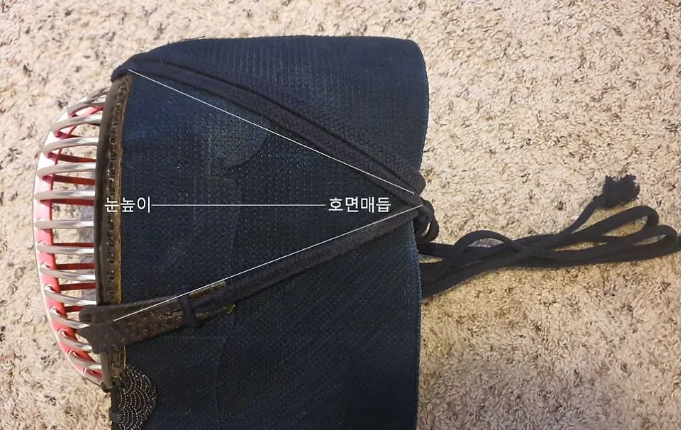 호면 끈의 매듭은 눈높이에 위치해야 한다 <사진: 저자 작성>