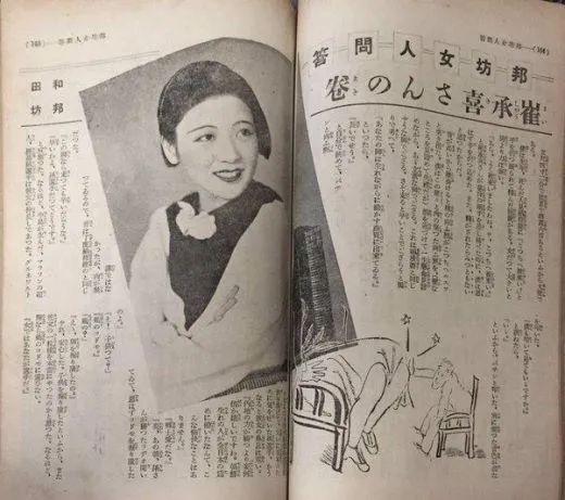 소화11년, 1936년, 월간지 '부인구락부' 10월호|만화가 와다쿠니보의 최승희 인터뷰 내용 출처: 라쿠텐 고도서 판매 블로그