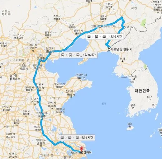 · 지금의 상황이라고 한다면 상하이 - 쉬저우 - 지난 - 텐진 - 셴양 - 단둥의 코스로 신의주 코앞까지 올 수 있는 상황이며 단둥 (예전의 안둥)까지 예상 소요시간은 21세기인 지금도 약 31시간이다.