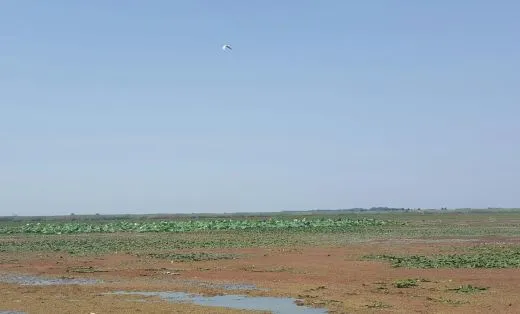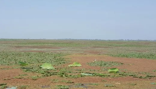 연꽃은 거의 수평선이 끝나는 곳까지 펼쳐 있다.