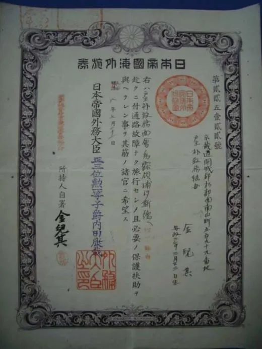 일본제국의 당시 상하이 소재 대사관 혹은 영사관을 방문하여 여권 신청을 해야 이 서류를 손에 넣을 수 있다.