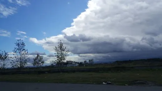 ▼ 하늘에는 이제 막 쏟아질 것과 같이 많은 구름이 떠 있다.
