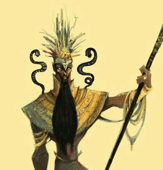 그는 왕의 양 어깨에 키스를 했고, 왕의 양 어깨에서는 뱀이 자라났다.