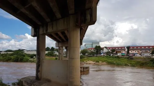 ▼ 이 작은 다리는 미얀마-태국의 우호의 다리로 강 (개천)의 저편은 태국이다.
