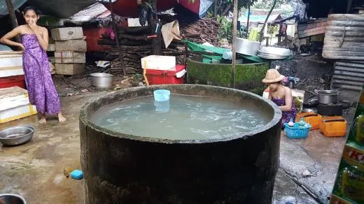 이들이 사는 곳 뒷편에 있는 약간 큰 공동 욕조를 발견하고 사진을 찍으려고 하니, 오후에 일을 마치고, 하루를 정리하는 아낙들의 목욕 시간이었다.