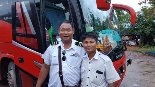 버스 안내원은 탑승객을 반갑게 맞이했고, 버스에는 기사 2명과 안내원 1명 (모두 남자)가 탑승한다.