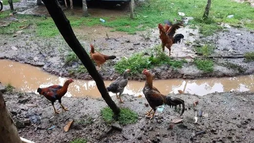 정원에는 기가 세 보이고, 맛은 없게 생긴 투계와 같이 생긴 '살아 있는 공룡' 닭들이 자리를 잡고 있었다.