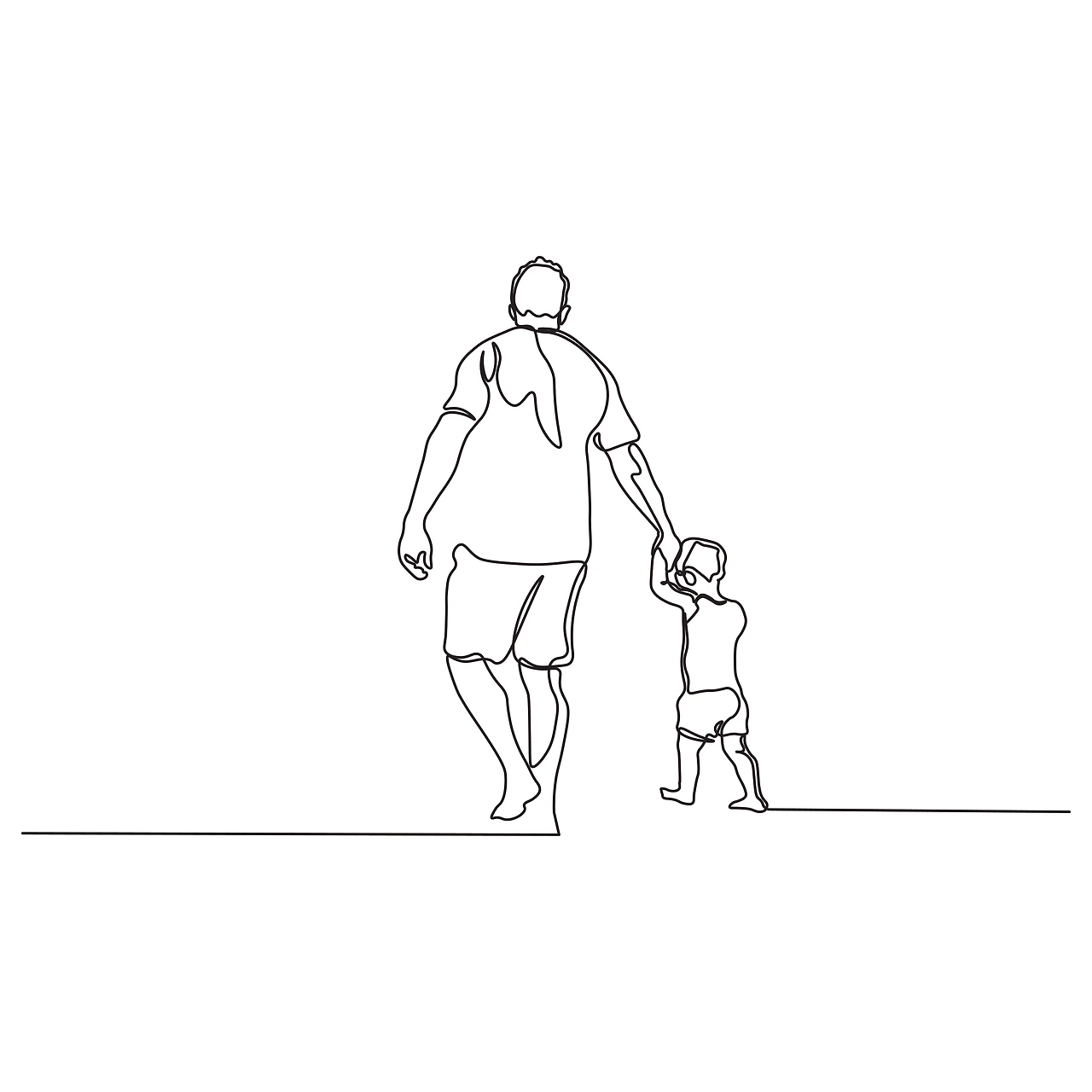 그림: <Continuous line drawing of a father and son lovely family concept Father's Day card.>, 라이선스 부여됨.