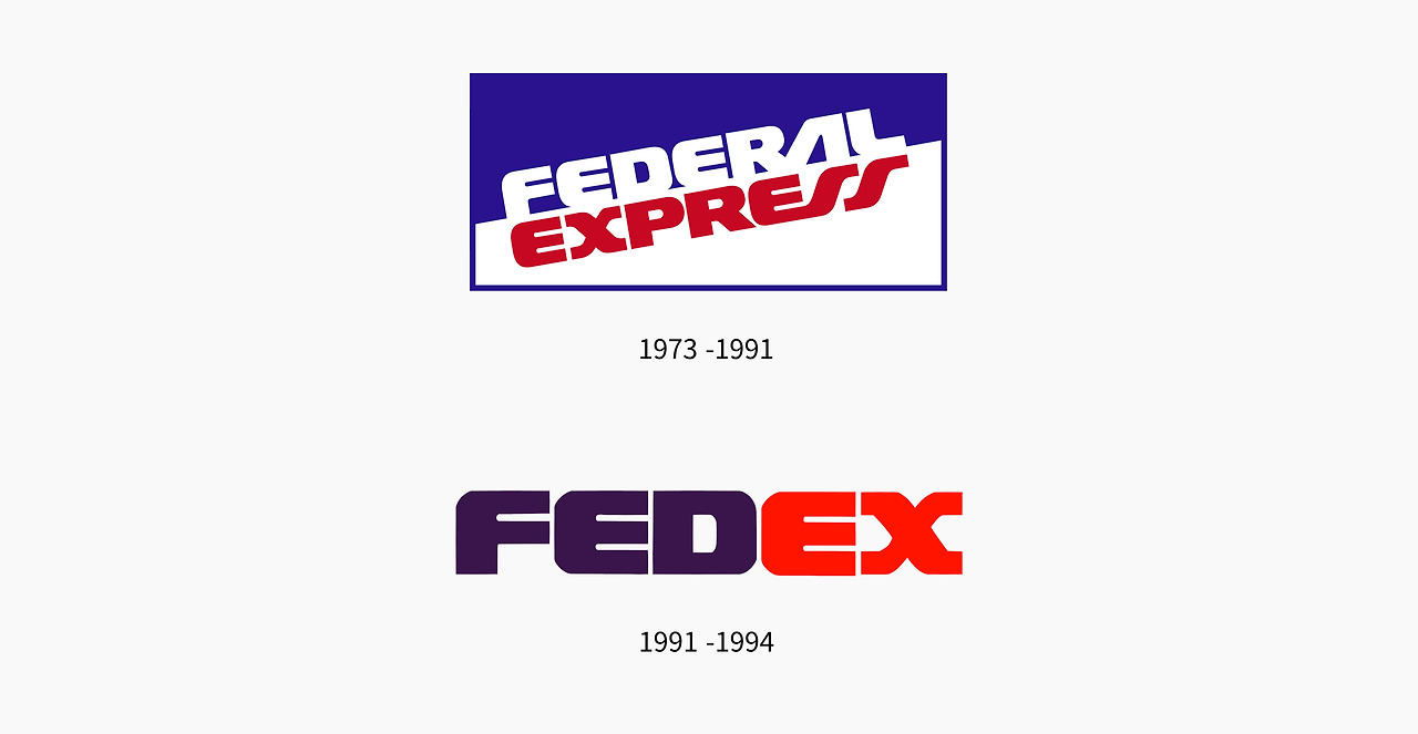 페더럴익스프레스(Federal Express)는 1990년대 당시 다소 일반적이고 딱딱한 이미지의 브랜드가 고민이었다. 우리나라의 ‘우체국’과 비슷한 이름이지만 사설 물류 비즈니스인 페더럴 익스프레스는 허브 앤 스포크(hub and spoke)라는 혁신적인 물류모델로 품질 경쟁력을 갖추고도 가장 빠른 배송을 제공한다는 가치가 로고에 온전히 표현되지 못하는 것이 고민이었다. 이로부터 회사는 그 이미지를 쇄신하고자 브랜드 리뉴얼을 결심한다.