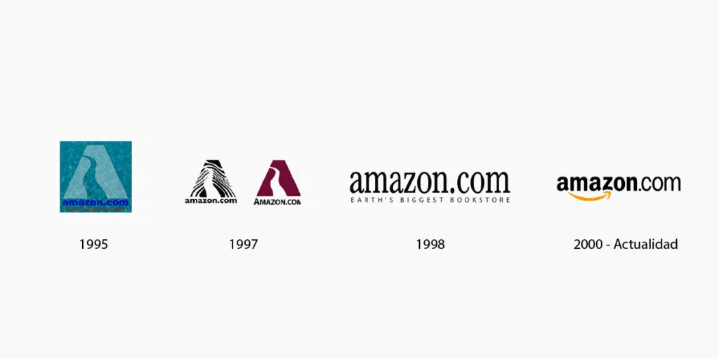 95년 아마존(Amazon)은 온라인 서점으로 시작했다. 로고에 큰돈을 들이지 않으려 아마존은 첫 알파벳 A를 로고로 디자인했다. 사업이 크게 성장하며 로고는 재 설계되었고, 심벌을 제거하고 슬로건으로 ‘지구에서 가장 큰 서점’이 추가되었다. 이후 아마존의 사업이 확장되며 지금의 거대 물류를 갖춘 커머스 사업모델로 거듭난다.