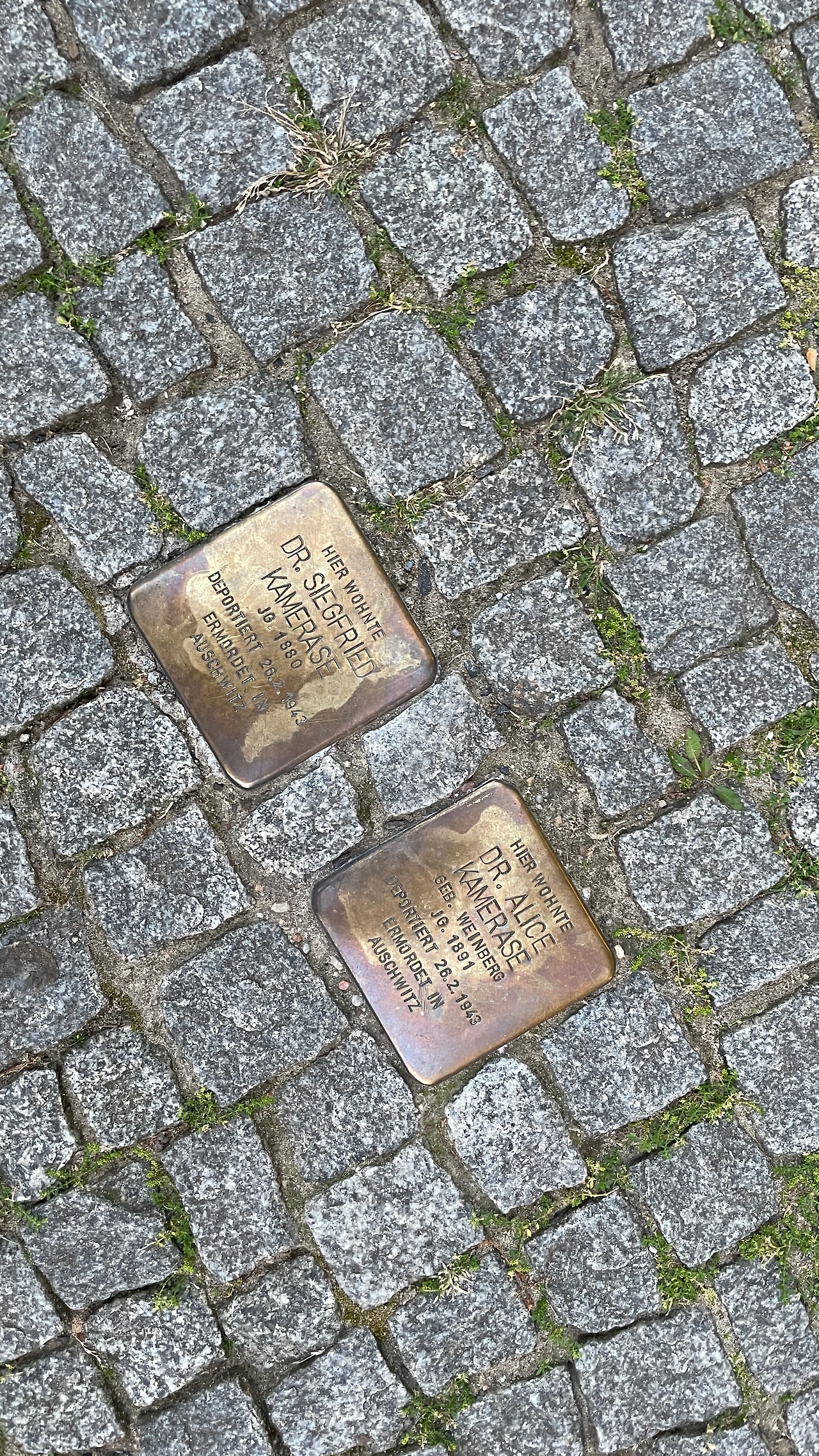 전날 행사장에서 B 씨로부터 전해 듣고는 다음날 아침에 거리를 달리며 찾던 것이 있다. 알고 있지 않으면 눈에 잘 띄지 않는 거리의 기념물 스톨퍼스테인(Stolperstein)은 보도블록 사이에 한 개, 혹은 여러 개가 함께 자리한다. ‘걸려 넘어지는 돌’이란 의미의 스톨퍼스테인에는 그 장소에 살았었지만 나치 독일에 의해 희생된 이들의 이름과 생년, 그리고 사망한 장소가 기록되어 있다. 대체로 유대인들이다. 스톨퍼스테인은 베를린 시내에만 수천 개에 달한다. 이름과는 다르게, 실제로는 그리 높지 않아 행인이 걸을 때 방해가 되진 않는다. 그저 현대를 살아가는 우리가 과거의 희생자들을 잊지 않고 기억하고 추모하자는 의미로 쾰른 출신의 조각가 군터 뎀니히 (Gunter Demnig)가 1992년부터 시작한 캠페인이며, 자원봉사자들이 주기적으로 이 돌을 관리한다.