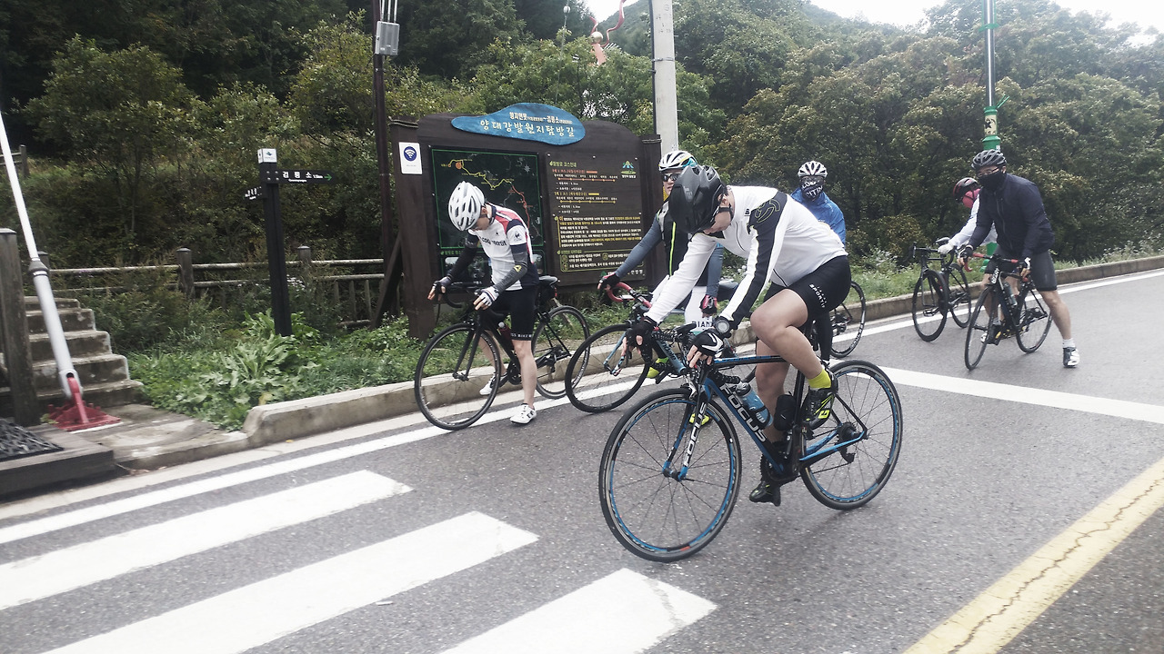 검룡소에서부터 -2-3도 정도의 내리막을 신나게 달렸다. 땅이 조금 젖은 것 말고는 괜찮았다. 다리가 가볍다고 느껴져 더 밟았다. 자전거는 힘을 누적해 앞으로 가는 도구이므로 가속도가 생기면 어느 정도의 힘을 더하고 덜하는지 가늠이 잘 되지 않는다. 그래서 요즘엔 파워미터(power meter)라는 것을 많이 쓴다. 속도는 사실 경사도, 바람의 방향과 세기, 노면의 마찰 상태 등 다양한 변수에 따른 상대적 지표이므로 온전히 체력 소모량을 측정하기 위해 일정 시간동안 발생되는 파워를 와트(watt)단위로 측정하기 위함이다. 파워미터가 보편화 되며 이젠 좀 더 전략적으로 타는 라이더들이 많아졌다.