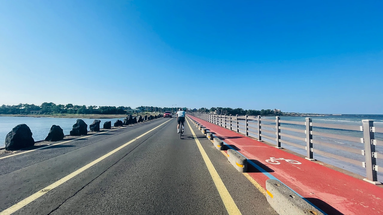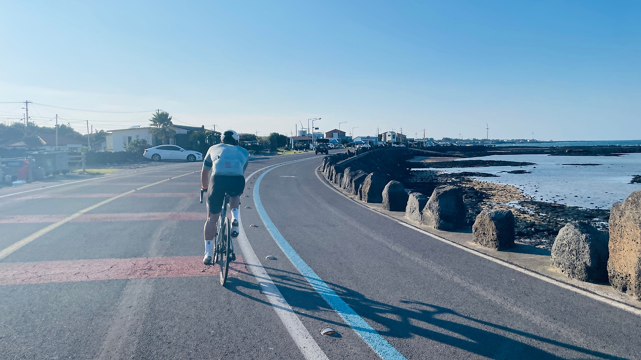 제주도 한 바퀴를 국토종주 자전거길로 돌자면 220km 정도가 된다. 제주도 해변의 자전거길이 모두 이어져 있는 것은 아니지만 바다를 가장 가까이에서 보면서 달릴 수 있는 길이고, 바다를 보는 것이 목적이라면 가장 적합한 길이다. 하지만 우리는 그 길을 달리지 않았다. 제주 해변의 자전거길은 좁고, 도로의 관리상태가 좋지 않아 바퀴가 얇은 로드자전거에 오히려 위험한 구간이 여럿 있다는 경험자의 조언이 있었기 때문이다.