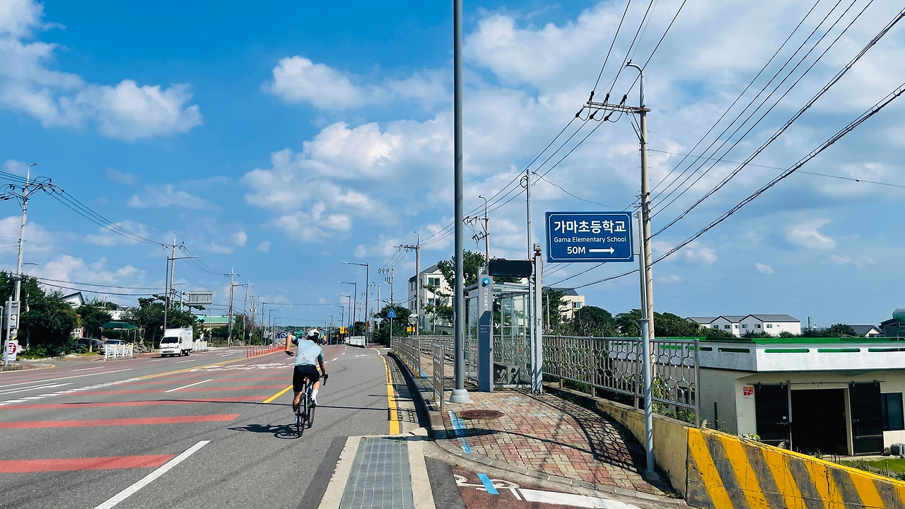 실제로 일부 구간에서 자전거길을 이용해보기도 했지만 계속 그 길을 이용하는 것은 어려웠다. 자전거 길 이용자가 적어서인지 관리가 잘 되어있지 않아 노면 상태가 엉망이었다. 지역 주민이 자전거길 위에 발을 펼쳐놓고 해초나 고추를 말리기도 하고, 차가 반쯤 걸쳐 주차되어 있기도 했다. 지난 태풍의 흔적인 밀려온 모래도 곳곳에 그대로 쌓여 있었다. 미래로 향하는 자전거 길에 계속 과거에만 머무는 것들은 나아감에 있어서 방해물에 불과했다.