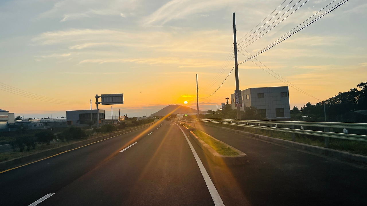 해가 지고 있었다. 6시 전후로 하늘이 붉게 물들기 시작했다. 조천리를 지나며, 정확히 자전거의 방향은 서쪽 하늘을 가리킨다. 긴 타원형인 제주도를 한 바퀴 돌아, 이제 처음 출발했던 그 방향으로 다시 달리기 시작한 것이다. 제주도 공항까지 10km 정도 남은 시점 시내에 들어선다. 한적하고 여유롭던 제주도 해변은 마치 꿈이었던 것처럼, 석양을 바라보고 깨어난 두 자전거 여행자는 많아진 차들 사이에서 서로 가까워졌다 떨어졌다를 반복한다. 이제부터 긴장의 끈을 더 부여잡아야 한다. 많은 사고가 집에 거의 다 와 마음을 놓을 때 발생한다.