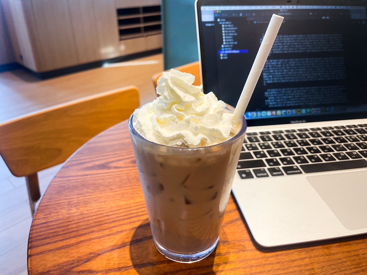 기도에 대한 글을 쓰기 전 휘핑크림을 듬뿍 올린 아이스 화이트모카 라떼를 주문했습니다. 보통은 단 커피를 좋아하지 않는데, 이렇게 한 번씩 당길 때가 있습니다. 그래도 몸 생각을 조금 하느라 시럽은 하나 적게, 우유는 귀리우유로 변경했습니다. 라면에 콩나물과 계란을 넣으며 '영향의 균형은 맞췄군'이라고, 자기 합리화하는 것과 같은 과정이었습니다.